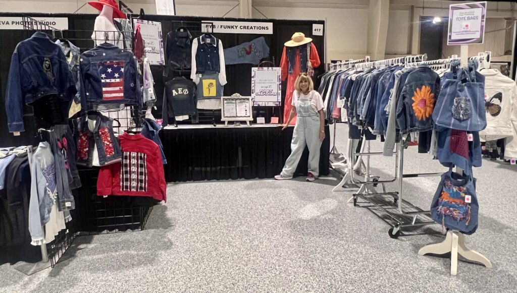 My FUNKY CREATIONS booth will be showcasing one-of-a-kind jean jackets, vests and kids’ denim apparel.